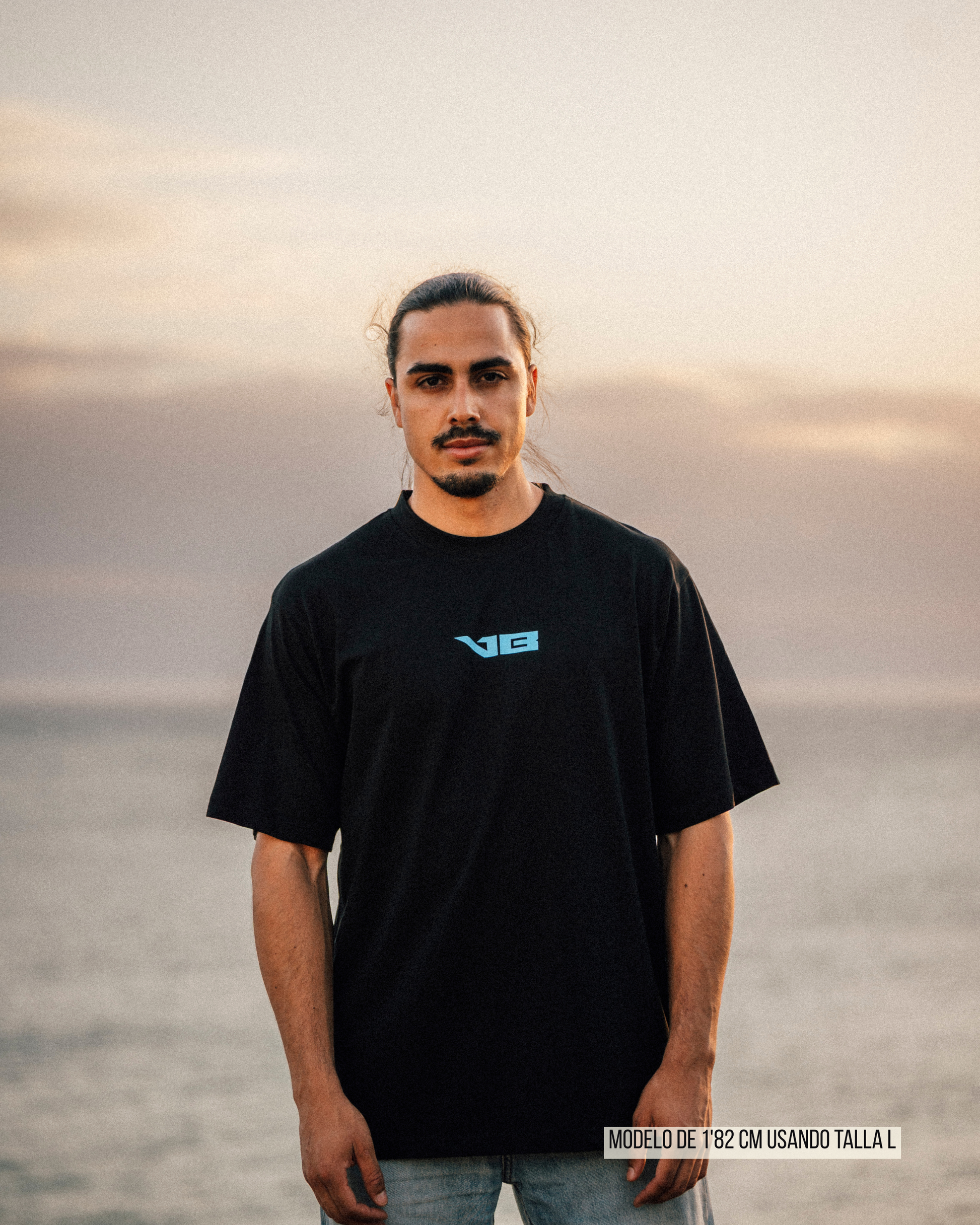 Camiseta oversize unisex con caída amplia. Disponible en colores crema y negro. Tallas S–XL. Corte cómodo y atemporal.